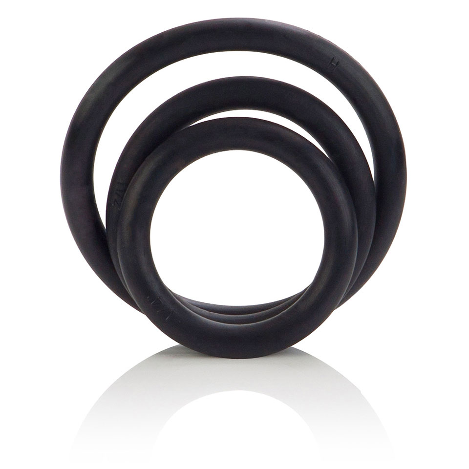 Enhance your erotic sensual satisfaction and performance with the sleek and discreet Rubber Ring Black 3 Piece Set.