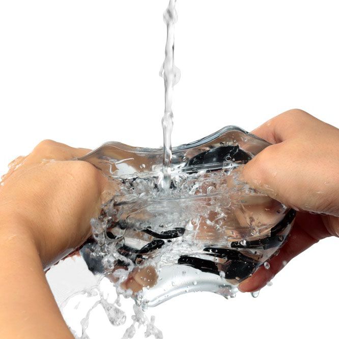 The masturbator is transparent and has a stimulating texture inside the canal that intensely stimulates the penis. A further level of stimulation can be created by squeezing the sides because this adds more pressure to the 3D elements and can lead to explosive orgasms. The masturbator is also easy to clean after use. Not only does the drying stand mean that it can dry quickly and in a hygienic way, but it also means that the masturbator can be put on display as well.